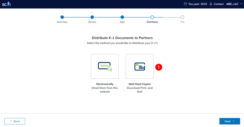 - Click Mail Hard Copies on the K-1 distribution dashboard.
