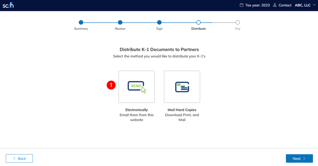 - Click Send Electronically on the K-1 distribution dashboard.