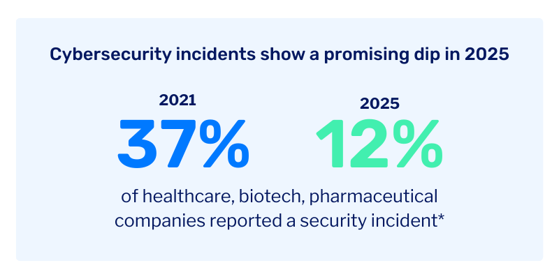 Cybersecurity and data breach incidents show a promising dip in 2025, reversing a prior 8+ year upward trend in prior years4. This reversal reflects increased awareness and stronger efforts to protect patient data and maintain regulatory compliance.