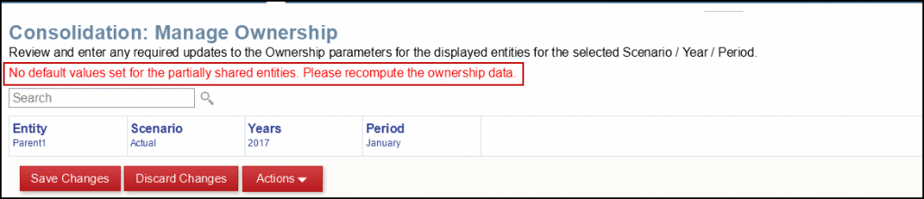 • Sometimes when selecting a different month or year within Manage Ownership, the following message may appear. To resolve the issue, simply Recompute the ownership data for the given month and year.