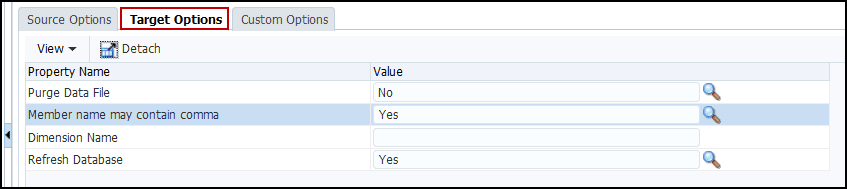 Once again, if a member name or alias may contain commas, go ahead to Target Options, and set the “Member name may contain comma” option to Yes. We don’t specify Dimension name, as the metadata is loading to the same dimension the Location has been set to.