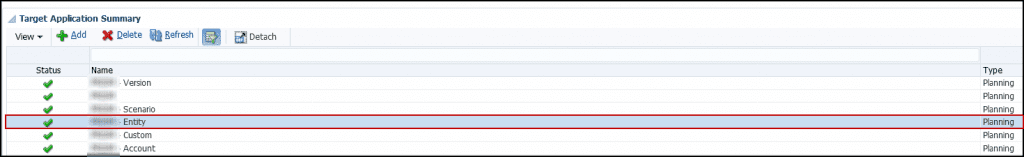 Once the dimensions are added successfully, click on the “AppName – Entity” under the Target Application to view Application Details of the Entity dimension.
