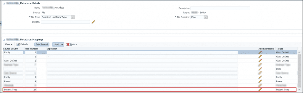 Specify the Data Load Mappings for the metadata load. While going through this process, you’ll specify mappings for each item list in the “Dimensions” drop down, this includes the attribute dimension (“Project Type”) we specified in the Application Details (under Target Application).