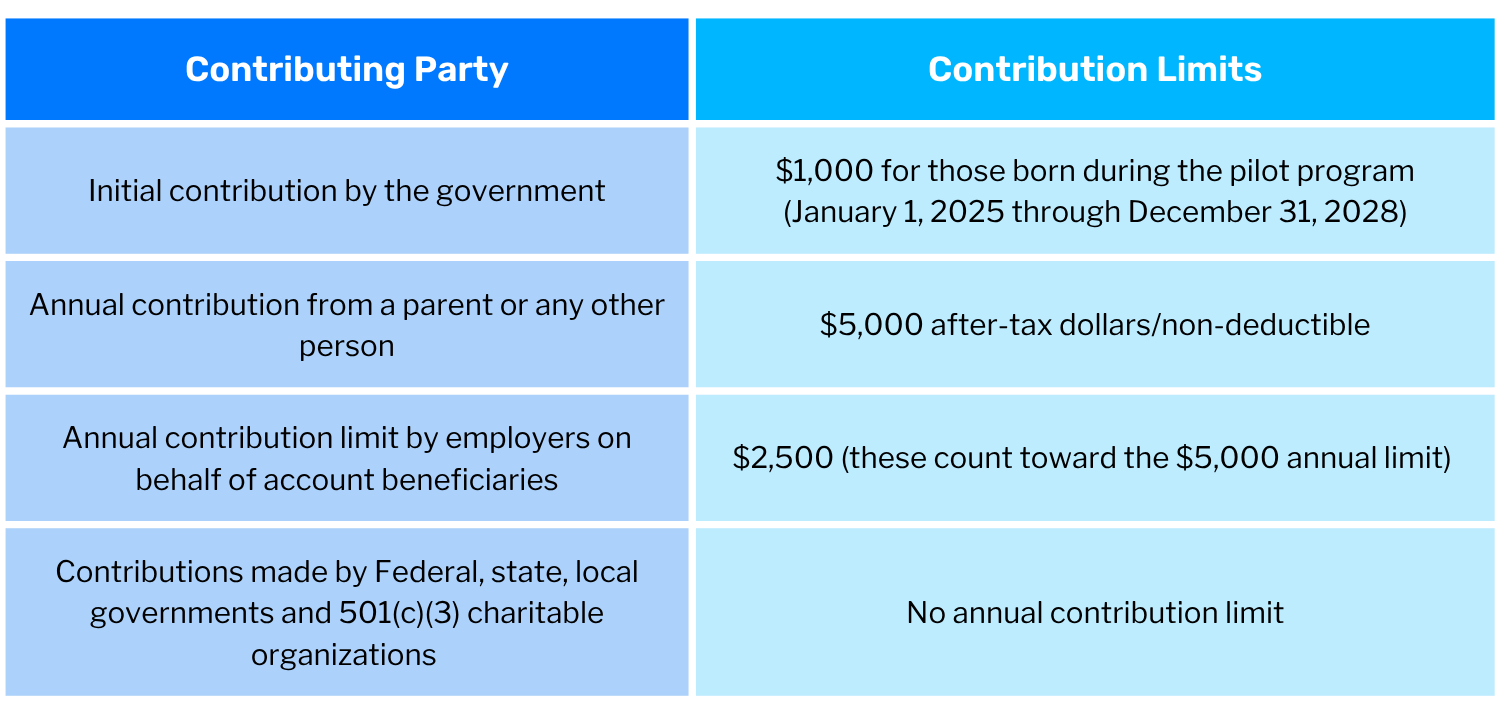 These new accounts will be tax-deferred investment accounts, meaning the funds grow tax-deferred, but when you take money out, it’s taxed at regular income rates. As with most tax-deferred accounts, there are penalties for early withdrawals; however, exceptions will likely apply, as these accounts will follow IRA rules once a beneficiary turns 18.