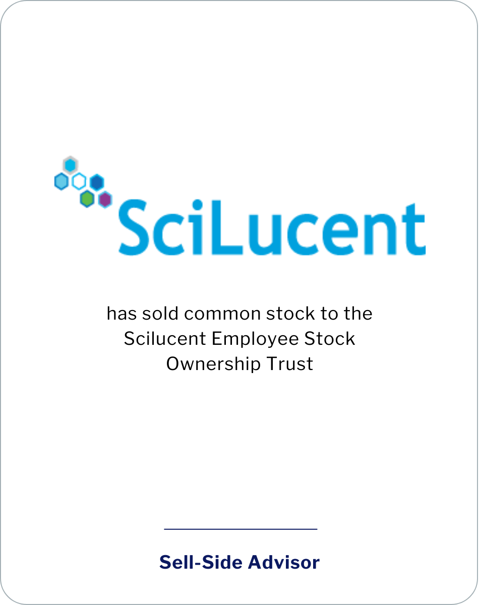 SC&H Capital advised SciLucent and its shareholders on the evaluation of strategic alternatives and the design and execution of a transaction resulting in a sale to an employee stock ownership plan. The ESOP structure aligned the interests of shareholders, employees, and clients while preserving the Company’s culture and positioning the business for continued growth under employee ownership.